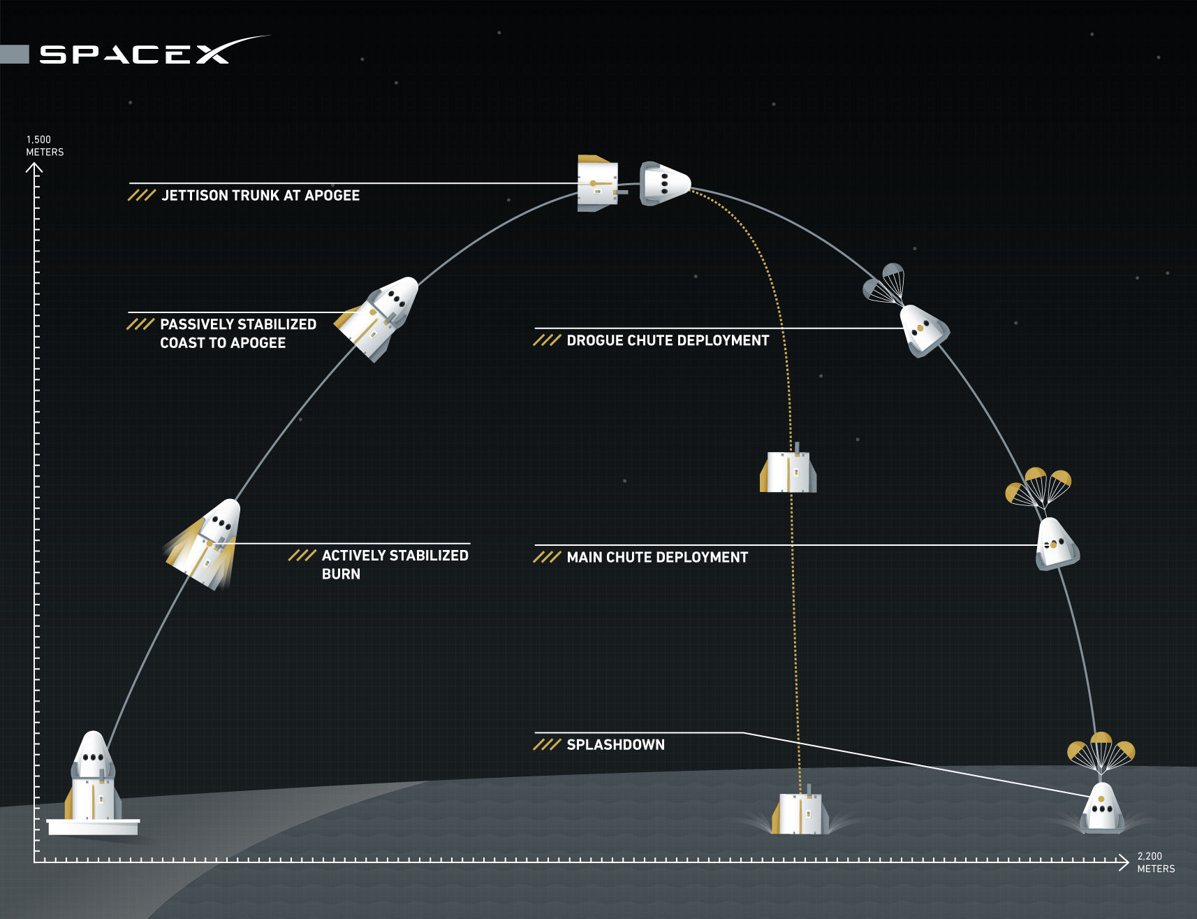 Mit einem kleinen Hüpfer von 2,2 Kilometern in knapp 2 Minuten wird SpaceX morgen einen großen Schritt in Richtung bemannter Raumflug machen. Gemeint ist der “Pad Abort Test” mit der Dragon Kapsel und ich hoffe, hoffe, hoffe es wird einen Live Webcast dazu geben.